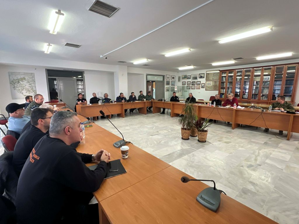 Η σύσκεψη ολοκληρώθηκε με την άσκηση επί χάρτου «Αίθων 2026», που αφορούσε τη διαχείριση δασικής πυρκαγιάς, με τη συμμετοχή όλων των τοπικών επιχειρησιακά εμπλεκόμενων φορέων.