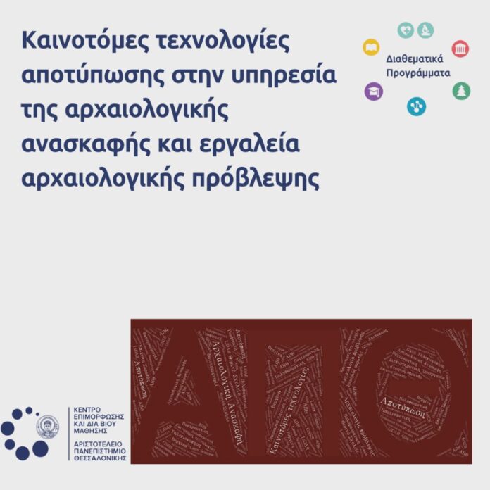 Το Κέντρο Επιμόρφωσης και Διά Βίου Μάθησης (ΚΕΔΙΒΙΜ) του Αριστοτελείου Πανεπιστημίου Θεσσαλονίκης (ΑΠΘ) σας καλωσορίζει στο εκπαιδευτικό πρόγραμμα με τίτλο «Καινοτόμες τεχνολογίες αποτύπωσης στην υπηρεσία της αρχαιολογικής ανασκαφής και εργαλεία αρχαιολογικής πρόβλεψης», διάρκειας 40 διδακτικών ωρών, το οποίο θα διεξαχθεί στις Αιγές (Βεργίνα) και θα υλοποιηθεί με τη μέθοδο δια ζώσης.