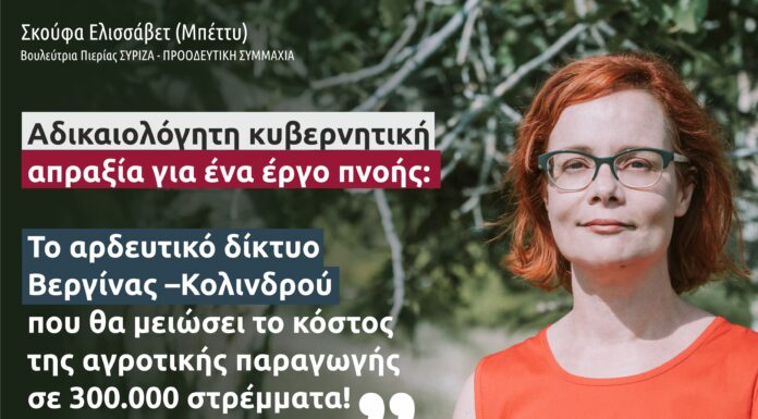 Στην αδικαιολόγητη στασιμότητα όσον αφορά την κατασκευή του έργου αρδευτικού δικτύου Βεργίνας – Κολινδρού, επανέρχεται με νέα Ερώτηση στους αρμόδιους υπουργούς Οικονομικών - Εσωτερικών...
