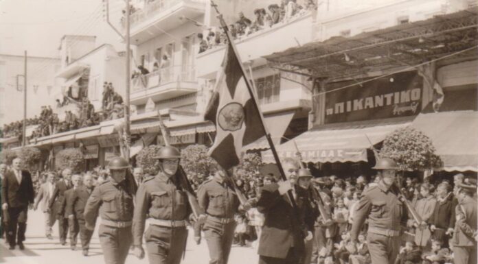 Του Περικλή Χατζηγιάννη, Δεκαετία του ’60. Παρελαύνει στην Κατερίνη ο Σύλλογος Παλαιών Πολεμιστών του Αλβανικού Έπους 1940-41. Τον σημαιοφόρο έφεδρο Αρχιλοχία του Ελληνικού Στρατού, Ιωάννη...