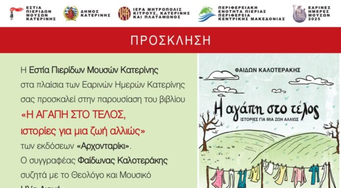 Μια διαφορετική εκδήλωση πραγματοποιήθηκε το Σάββατο 2 Απριλίου από την Εστία Πιερίδων Μουσών Κατερίνης, με την παρουσίαση του βιβλίου του Φαίδωνα Καλοτεράκη, "Η αγάπη...