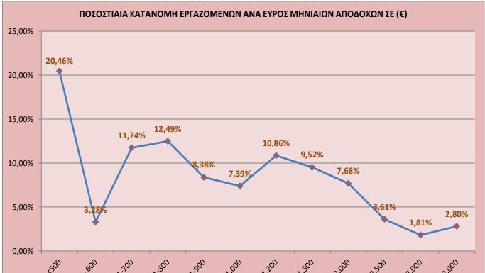 Του Δ. Κατσαγάνη Τη μαζική μετακίνηση περίπου του 1/10 των μισθωτών σε υψηλότερα κλιμάκια αποδοχών έφερε η αύξηση του κατώτατου μισθού τον περασμένο Φεβρουάριο κατά...