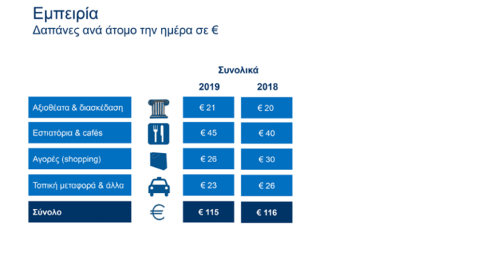 Στα ίδια επίπεδα με το 2018 διαμορφώθηκε φέτος η μέση ημερήσια δαπάνη ανά άτομο στην Αθήνα για αξιοθέατα, εστίαση, μεταφορά και αγορές, με αυξομειώσεις...