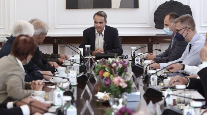 Ο πρωθυπουργός Κυριάκος Μητσοτάκης συναντήθηκε στο Μέγαρο Μαξίμου με επικεφαλής Ενώσεων Συνταξιούχων. “Δεν θα κάνω μεγάλη επισκόπηση του τι έχουμε κάνει και του τι πιστεύουμε...