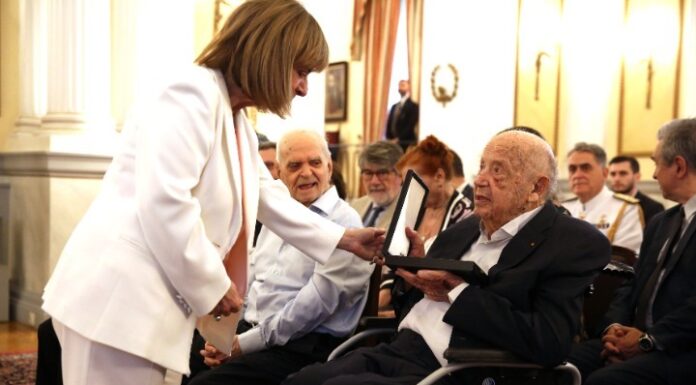 Σε ειδική τελετή που πραγματοποιήθηκε το πρωί της Παρασκευής στο Προεδρικό Μέγαρο, η Πρόεδρος της Δημοκρατίας, Κατερίνα Σακελλαροπούλου, απένειμε το παράσημο του Ανώτερου Ταξιάρχη...