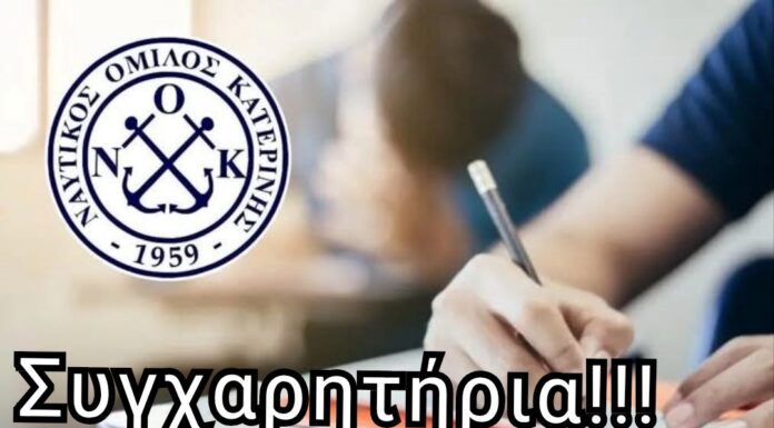 Ο Ναυτικός Όμιλος Κατερίνης εκφράζει τα πιο θερμά του συγχαρητήρια στους αθλητές και τις αθλήτριές μας που κατάφεραν να εισαχθούν στα Ανώτατα Εκπαιδευτικά Ιδρύματα...