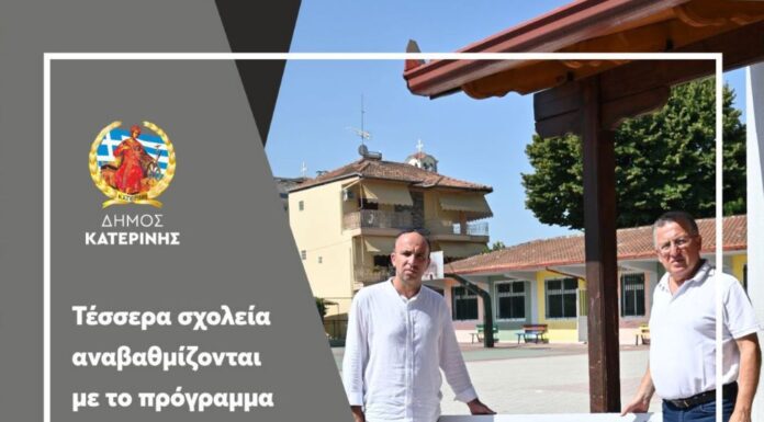 Iωάννης Ντούμος: Βελτιώνουμε τις υποδομές και προσφέρουμε στα παιδιά μας αναβαθμισμένο, λειτουργικό και φιλικό σχολικό περιβάλλον Σε εξέλιξη παρεμβάσεις από τον Δήμο Κατερίνης σε τέσσερα...