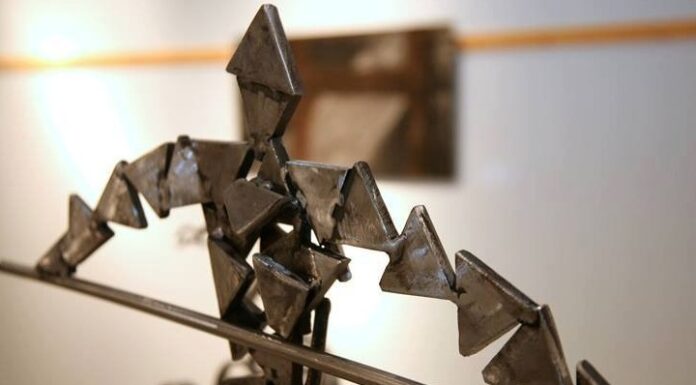 Στο εργαστήριο του γλύπτη Κώστα Καμπερίδη στην Κατερίνη Πιερίας, ανάμεσα σε σιδερένιες φιγούρες και κάθε είδους μεταλλικό αντικείμενο, από γρανάζια μέχρι φτυάρια, «ξύπνησε» εδώ...