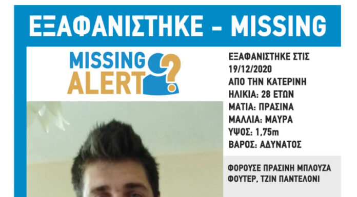 Στις 19/12/2020 εξαφανίστηκε από την περιοχή της Κατερίνης ο Γεώργιος Πολυζόπουλος, 28 ετών. Το «Χαμόγελο του Παιδιού» ενημερώθηκε για την εξαφάνισή του στις 15/01/2021...