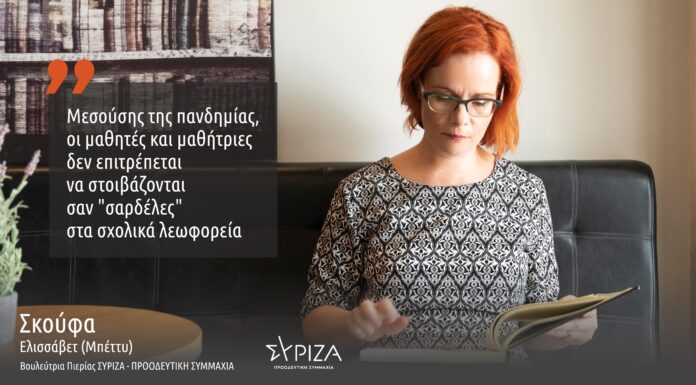 Μπ.Σκούφα: «Χωρίς σχέδιο προστασίας από τον covid19 η πολιτική της κυβέρνησης για τους δικαιούχους μαθητές δωρεάν μεταφοράς με τα σχολικά λεωφορεία».   Στην Αναφορά που κατέθεσε...