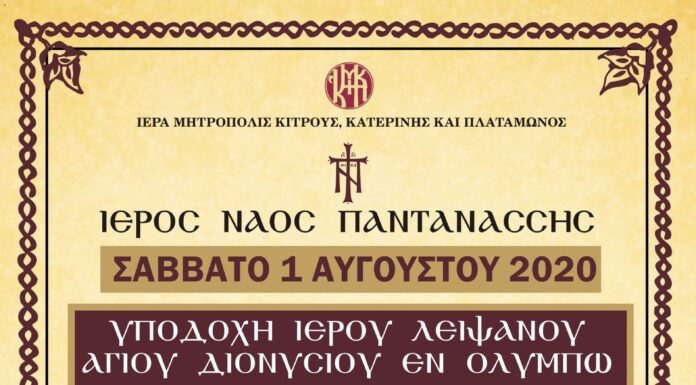 Έπειτα από απόφαση του Σεβασμιωτάτου Μητροπολίτου Κίτρους, Κατερίνης και Πλαταμώνος  κ. Γεωργίου, την Παρασκευή 24 Ιουλίου, ώρα 21:00, στον Ιερό Καθεδρικό Ναό Θείας Αναλήψεως...