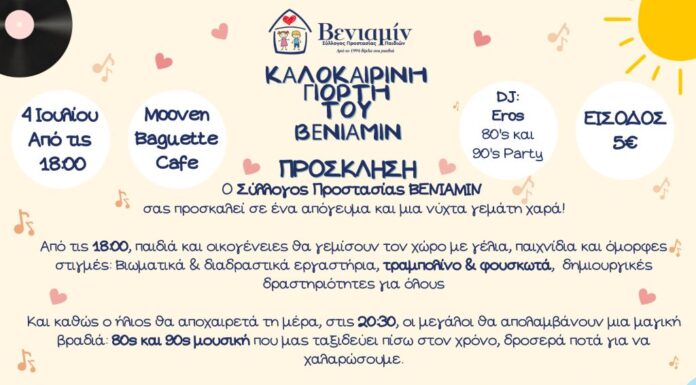 Αγαπητοί φίλοι και υποστηρικτές του Συλλόγου Προστασίας Παιδιών "Βενιαμίν", Το καλοκαίρι είναι πλέον εδώ και η καρδιά μας γεμίζει χαρά με την προοπτική να το...