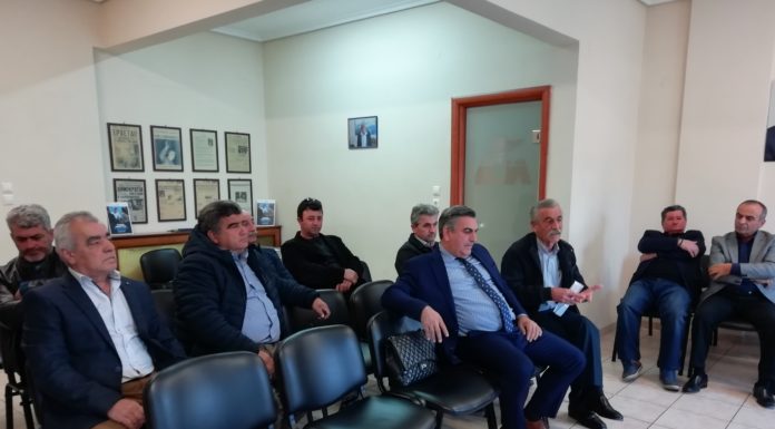 Κοινή σύσκεψη του Τομέα Αγροτικού της Νομαρχιακής Διοικούσας Επιτροπής Πιερίας της ΝΕΑΣ ΔΗΜΟΚΡΑΤΙΑΣ με τις διοικήσεις Αγροτικών Συνεταιρισμών, παρουσία των Βουλευτών του κόμματος Φ....