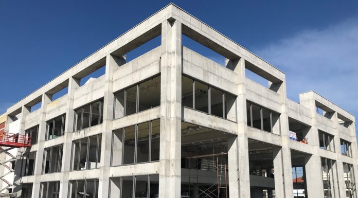 Με την τοποθέτηση μεταλλικών δοκών -  με έμφαση στη νότια όψη του κτιρίου -  πάνω στους οποίους θα στηθούν τα υαλοπετάσματα συνεχίζονται οι παρεμβάσεις...