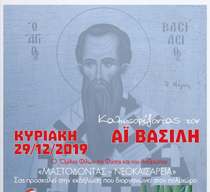 Ο Όμιλος Φίλων της Φύσης και του Ανθρώπου «ΜΑΣΤΟΔΟΝΤΑΣ - ΝΕΟΚΑΙΣΑΡΕΙΑ» Σας προσκαλεί την Κυριακή 29 Δεκεμβρίου 2019 στην Εκδήλωση που διοργανώνει «Καλωσορίζοντας τον Άϊ Βασίλη»,...
