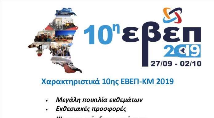 10η ΕΒΕΠ-ΚΜ 2019   Εγκαίνια : Παρασκευή 27 Σεπτεμβρίου, στις 7:30 το απόγευμα Διάρκεια : Παρασκευή 27 Σεπτεμβρίου έως και Τετάρτη 3 Οκτωβρίου   Για 6 ημέρες...