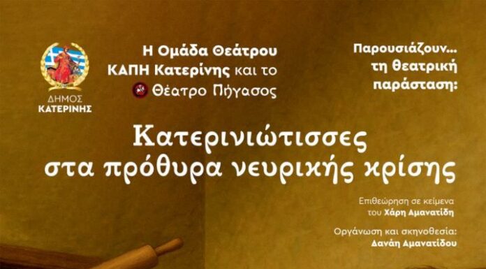Μια ξεκαρδιστική θεατρική επιθεώρηση από την Ομάδα Θεάτρου του ΚΑΠΗ Ο Δήμος Κατερίνης και το Τμήμα Μέριμνας Τρίτης Ηλικίας, με ιδιαίτερη χαρά σας προσκαλούν στην...
