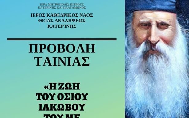«Η ΖΩΗ ΤΟΥ ΟΣΙΟΥ ΙΑΚΩΒΟΥ ΤΟΥ ΜΕ ΣΥΓΧΩΡΕΙΤΕ»,  προβλήθηκε  σήμερα στις 6 μ.μ., στην αίθουσα του Ιερού Καθεδρικού Ναού Θείας Αναλήψεως Κατερίνης.   Πηγή: orthodoxianewsagency.gr