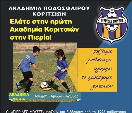Η ομάδα των κοριτσιών της Ακαδημίας Ποδοσφαίρου των ΠΙΕΡΙΔΩΝ ΜΟΥΣΩΝ αγωνίζεται και φέτος για 2η χρονιά στο πρωτάθλημα υποδομών της Ένωσης Ποδοσφαιρικών Σωματείων Πιερίας. Αγωνίζεται...