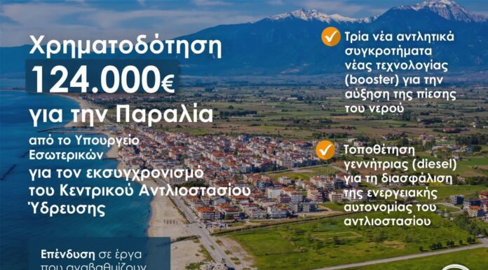 Λύση στο ζήτημα της ενεργειακής αυτονομίας του κεντρικού αντλιοστασίου ύδρευσης της δημοτικής κοινότητας Παραλίας, διασφαλίζοντας την απρόσκοπτη και αδιάλειπτη υδροδότηση του οικισμού, δίνει για...