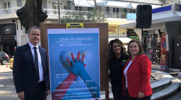 Το μήνυμα της ευαισθητοποίησης & της εκπαίδευσης στην πρακτική της καρδιοαναπνευστικής αναζωογόνησης έστειλαν σήμερα από την πλατεία Ελευθερίας, ο Δήμος Κατερίνης (Γραφείο Πολιτικής Προστασίας),...