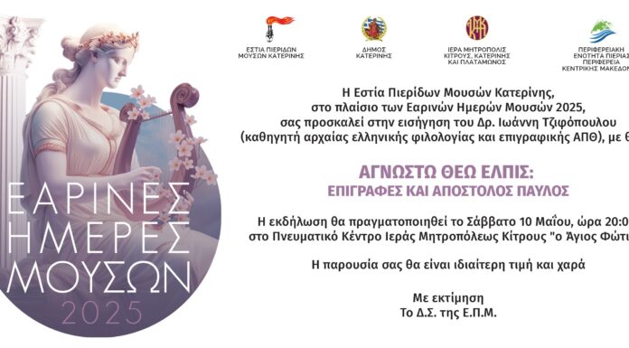 Έχουμε την τιμή και τη χαρά να σας προσκαλέσουμε στην εισήγηση του Δρ. Ιωάννη Τζιφόπουλου "ΑΓΝΩΣΤΩ ΘΕΩ ΕΛΠΙΣ: ΕΠΙΓΡΑΦΕΣ ΚΑΙ ΑΠΟΣΤΟΛΟΣ ΠΑΥΛΟΣ", το Σάββατο...