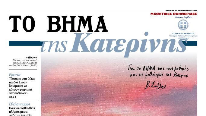 Υπό την Αιγίδα του Υπουργείου Παιδείας, Θρησκευμάτων και Αθλητισμού «ΤΟ ΒΗΜΑ της Κατερίνης» Με το ΒΗΜΑ κυκλοφορεί, αυτή την Κυριακή 22 Φεβρουαρίου 2026  η μαθητική εφημερίδα «ΤΟ ΒΗΜΑ της Κατερίνης». Οι...