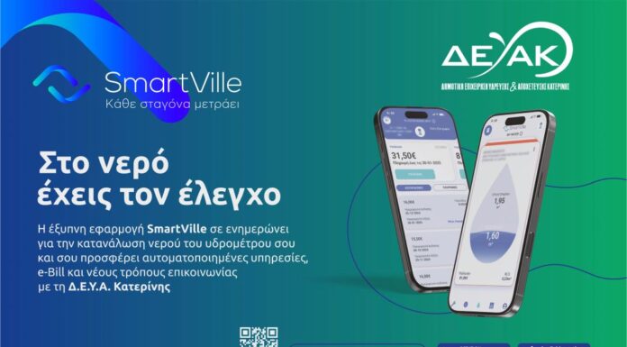 Η ΔΕΥΑ Κατερίνης κάνει ένα μεγάλο βήμα προς την ψηφιοποίηση των υπηρεσιών της, παρέχοντας δωρεάν στους καταναλωτές της το My SmartVille, την έξυπνη εφαρμογή...