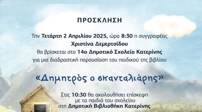 Στις 2 Απριλίου: Επίκεντρο το Παιδικό Βιβλίο! Η Χριστίνα Δεμερτσίδου και ο «Δημητρός ο σκανταλιάρης» θα συμμετάσχουν στον εορτασμό της Παγκόσμιας Ημέρας Παιδικού Βιβλίου, με...