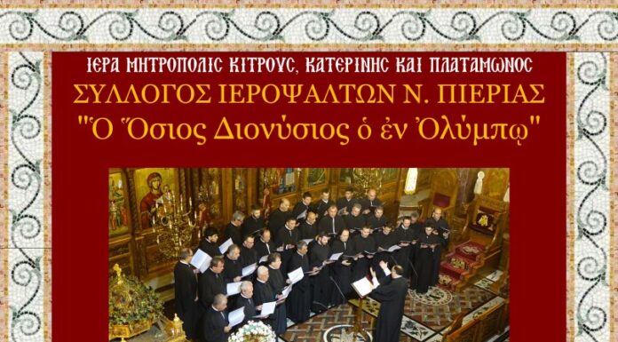 Με τις ευλογίες του Σεβασμιωτάτου Μητροπολίτου Κίτρους, Κατερίνης και Πλαταμώνος κ.κ. Γεωργίου, ο Σύλλογος Ιεροψαλτών Ν. Πιερίας «Ο ΟΣΙΟΣ ΔΙΟΝΥΣΙΟΣ Ο ΕΝ ΟΛΥΜΠΩ» το...