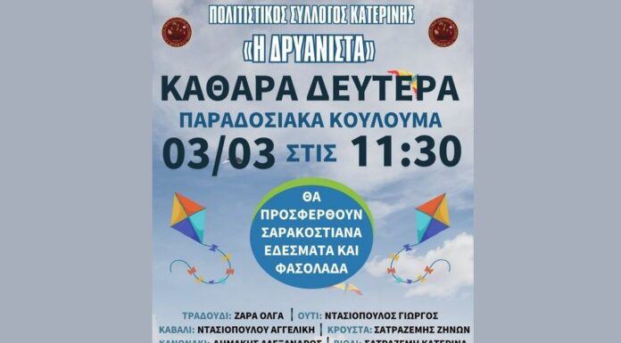 Την Καθαρά Δευτέρα 3 Μαρτίου 2025 ο Σύλλογος μας θα γιορτάσει όπως κάθε χρόνο «Τα Κούλουμα»! Έτσι την Καθαρά Δευτέρα σας περιμένουμε όλους στον χώρο...