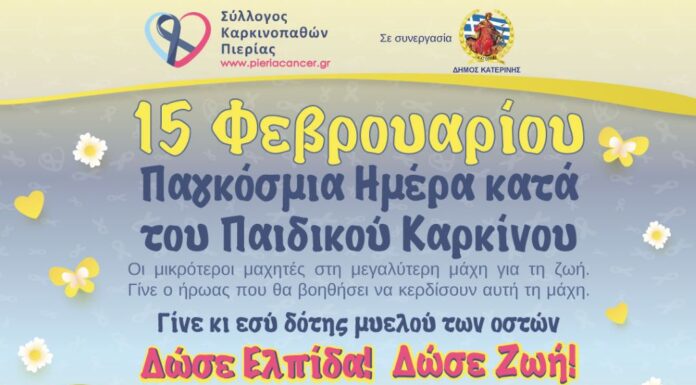 Ο Σύλλογος Καρκινοπαθών Πιερίας και η Αντιδημαρχία Υπηρεσιών Προσχολικής Αγωγής και Δημιουργικής Απασχόλησης του Δήμου Κατερίνης ενώνουν τις δυνάμεις τους για τη ζωή! Στο πλαίσιο...