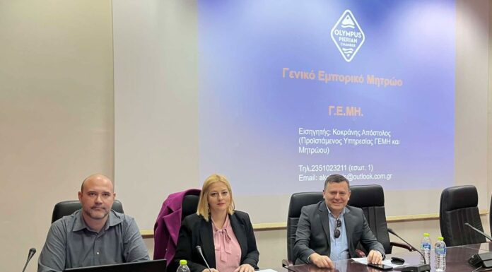 Το Επιμελητήριο Πιερίας σε συνεργασία με την Ένωση Φοροτεχνικών Ελευθέρων Επαγγελματιών Πιερίας, διοργάνωσαν ανοιχτή ενημερωτική εκδήλωση με θέμα: «Γενικό Εμπορικό Μητρώο (ΓΕΜΗ) και Υπηρεσία...