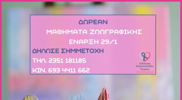 Ο Σύλλογος Καρκινοπαθών Πιερίας σας προσκαλεί σε ένα ταξίδι δημιουργικότητας και αυτοέκφρασης! Ξεκινάμε ένα νέο πρόγραμμα δωρεάν μαθημάτων ζωγραφικής, ανοιχτό σε όλους όσους επιθυμούν να...