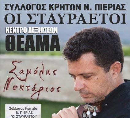 Σας προσκαλούμε να παρευρεθείτε αλλά και να προβάλλετε με οποιοδήποτε μέσο σας τον Ετήσιο Χορό του Συλλόγου Κρητών Πιερίας "ΟΙ ΣΤΑΥΡΑΕΤΟΙ", που θα πραγματοποιηθεί το Σάββατο...