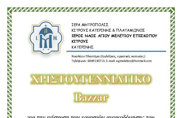 Ο Ιερός Ναός του Αγίου Μελετίου προς ενίσχυση των εργασιών ανεγέρσεως διαθέτει γλυκά του κουταλιού και χειροποίητα παραδοσιακά προϊόντα όπως τραχανά, χυλοπίτες κ.α., όλα...