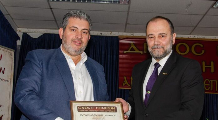 Με συγκίνηση και ιδιαίτερη ικανοποίηση, ο Πρόεδρος του Επιμελητηρίου Πιερίας κ. Κωνσταντίνος Πίτσιας, παρέλαβε χθες το απόγευμα, την τιμητική διάκριση από τη Σχολή Γονέων...