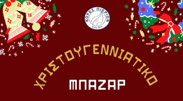 Ο σύλλογος Κόρες Πιερίων σας προσκαλεί στο χριστουγεννιάτικο μπαζάρ που διοργανώνει από την Παρασκευή 20 μέχρι και την Κυριακή 22 Δεκεμβρίου 2024, από τις...