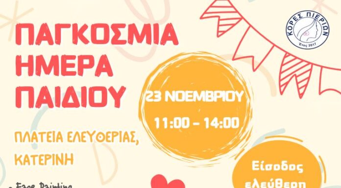 Με αφορμή την Παγκόσμια Ημέρα Παιδιού, ο σύλλογός μας θα πραγματοποιήσει εκδήλωση, το Σάββατο 23 Νοεμβρίου 2024 και ώρες 11:00 - 14:00, στην πλατεία...