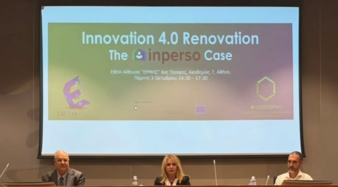 Η Υφυπουργός Ανάπτυξης απηύθυνε χαιρετισμό στην ημερίδα που διοργάνωσε η ΕΒΕΤΑΜ σε συνεργασία με το cluster e-CODOMH, με τίτλο «Innovation 4.0 Renovation: Καινοτομία στην...