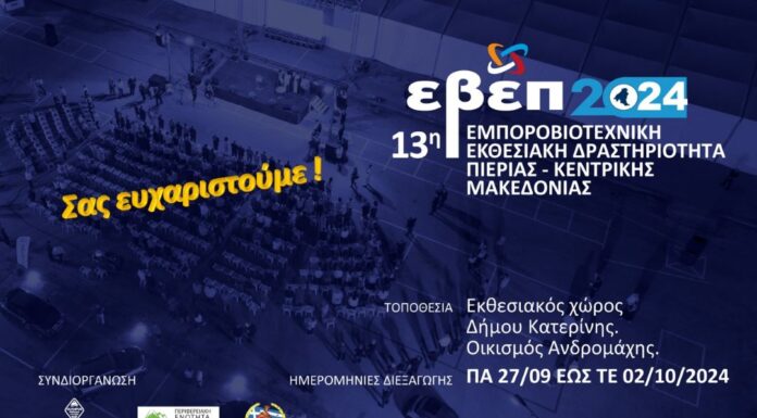 Ηλίας Χατζηχριστοδούλου, Πρόεδρος Επιμελητηρίου Πιερίας: «Ευχαριστούμε θερμά τους εκθέτες, τους επισκέπτες και τους συνδιοργανωτές, που με την παρουσία και τη συνεργασία τους, συνέβαλαν στην...