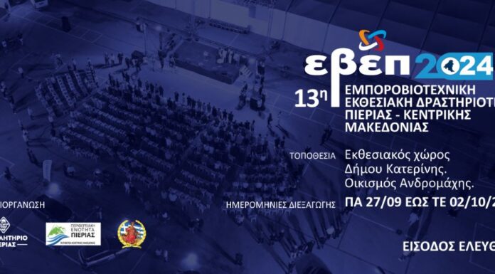 Η 13η Εμποροβιοτεχνική Εκθεσιακή Δραστηριότητα Πιερίας - Κεντρικής Μακεδονίας 2024 από την Παρασκευή 27 Σεπτεμβρίου είναι έτοιμη να υποδεχτεί τους επισκέπτες της, προσβλέποντας να...
