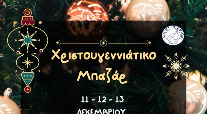 Οι Κόρες Πιερίων σας προσκαλούν στο καθιερωμένο χριστουγεννιάτικο μπαζάρ που θα πραγματοποιηθεί την Πέμπτη 11, Παρασκευή 12 και Σάββατο 13 Δεκεμβρίου και ώρες 10:00...