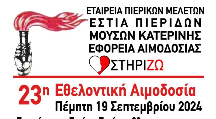 Η Εφορεία Αιμοδοσίας της Εστίας Πιερίδων Μουσών και ο Σύλλογος Γονέων και Κηδεμόνων ατόμων με αναπηρία "ΣΤΗΡΙΖΩ" Ν. Πιερίας, προσκαλούμε τα μέλη και τους...