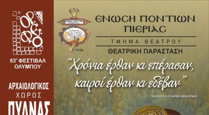 Η Ένωση Ποντίων Πιερίας στο πλαίσιο των εκδηλώσεων του 53ου Φεστιβάλ Ολύμπου, έχει την τιμή και την χαρά να σας προσκαλέσει το Σάββατο 7...