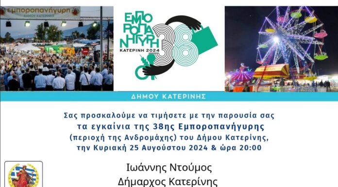 Η  ανανεωμένη 38η Εμποροπανήγυρη του Δήμου Κατερίνης, με περισσότερη διαδραστικότητα, περισσότερη ψυχαγωγία, περισσότερη διασκέδαση για όλους σηκώνει επίσημα αυλαία με τα εγκαίνια της διοργάνωσης,...
