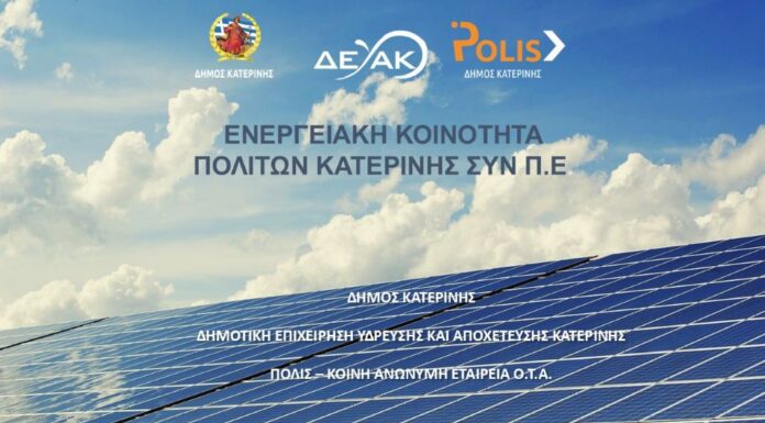 Στη σύσταση ενεργειακής κοινότητας, που θα υπερκαλύψει τις ενεργειακές ανάγκες του συνόλου των δημοτικών υποδομών, με την εγκατάσταση φωτοβολταϊκών σταθμών ισχύος 18 MWh, σε...