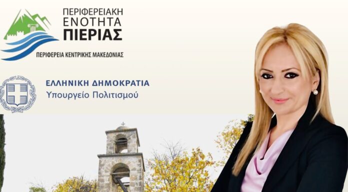 Η Αντιπεριφερειάρχης Πιερίας, Σοφία Μαυρίδου, απέστειλε σήμερα επιστολή προς το Υπουργείο Πολιτισμού με θέμα: Αίτημα ένταξης και χρηματοδότησης για την αναστήλωση και ανάδειξη του...