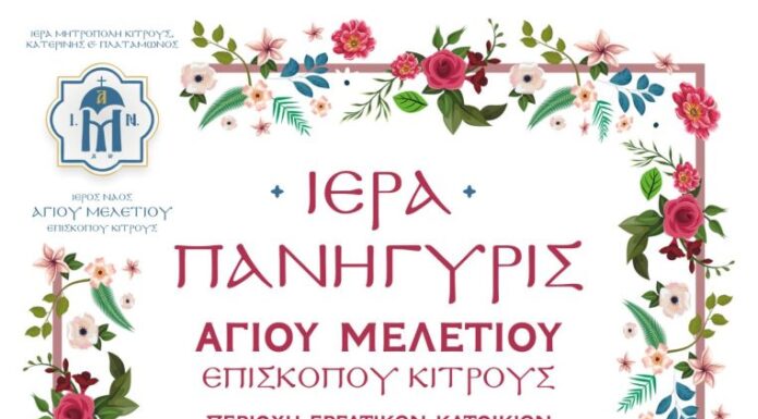 Στο πλαίσιο της μνήμης του τοπικού μας Αγίου Μελετίου επισκόπου Κίτρους, η εκκλησία μας ιδιαιτέρως τιμά την μνήμη του το Σάββατο 18 Μαΐου 2024,...