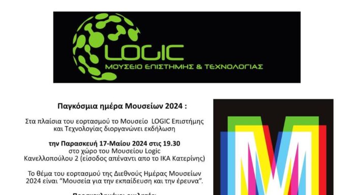 Στα πλαίσια του εορτασμού της Παγκόσμιας Ημέρας Μουσείων, το Μουσείο  LOGIC Επιστήμης και Τεχνολογίας του Τμήματος Διοίκησης Εφοδιαστικής Αλυσίδας  του ΔΙΠΑΕ διοργανώνει εκδήλωση την...